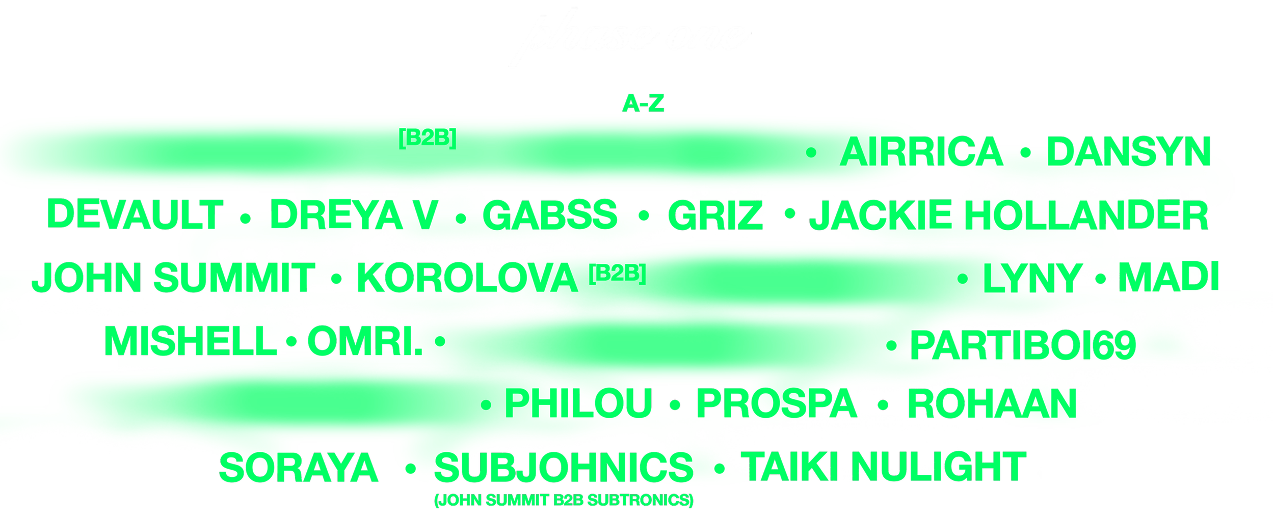John Summit InstagramSpotify Airrica InstagramSpotify Dansyn InstagramSpotify Devault InstagramSpotify Dreya V InstagramSpotify Gabss InstagramSpotify Griz InstagramSpotify Jackie Hollander InstagramSpotify Korolova InstagramSpotify LYNY InstagramSpotify OMRI. InstagramSpotify PHILOU InstagramSpotify PROSPA InstagramSpotify ROHAAN InstagramSpotify Soraya InstagramSpotify Subtronics InstagramSpotify Taiki Nulight InstagramSpotify